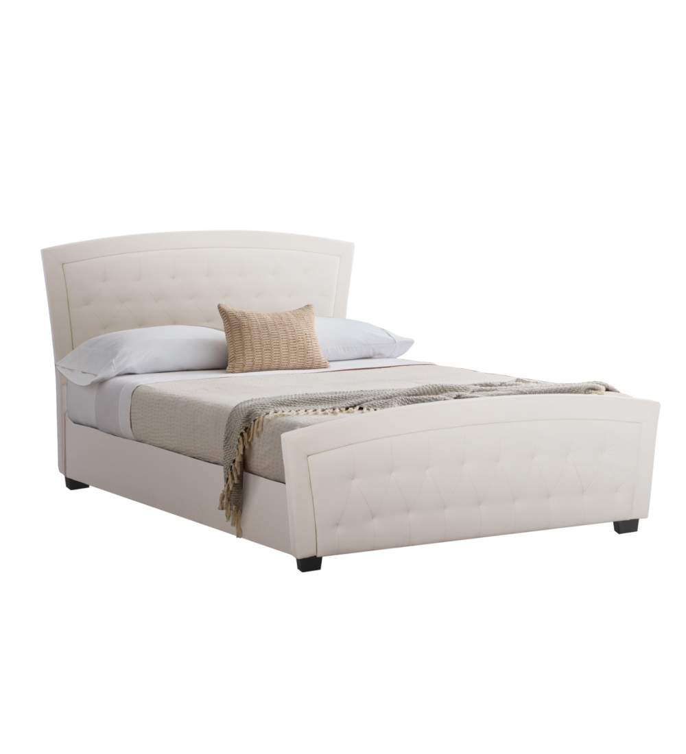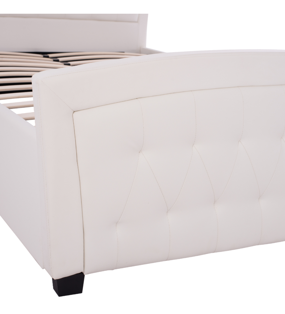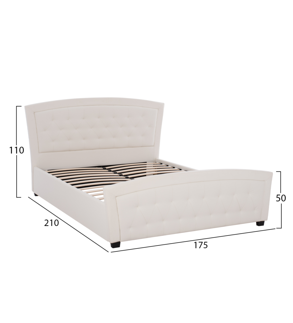 Το κρεβάτι LORETTE έχει επένδυση με Λευκό Καπιτονέ Τεχνόδερμα (PU leather) υψηλής ποιότητας.