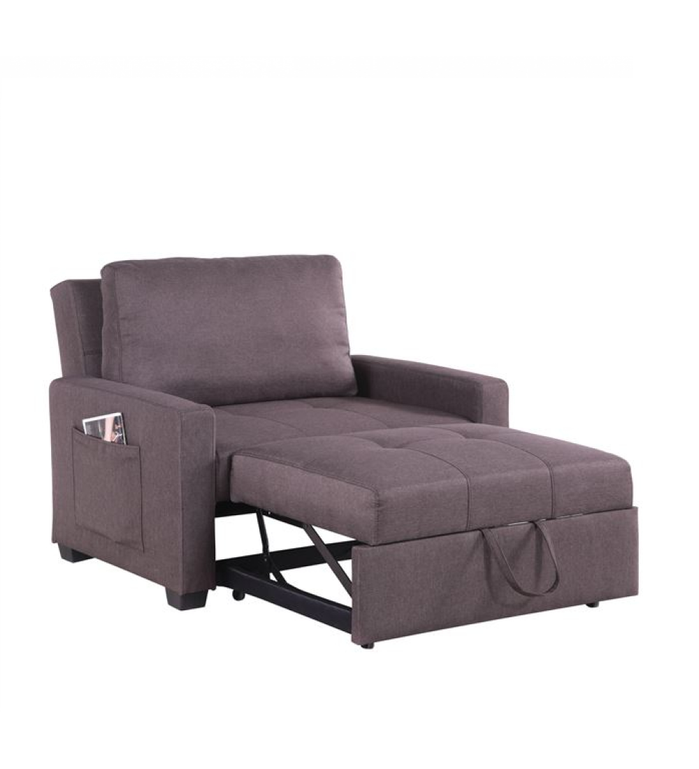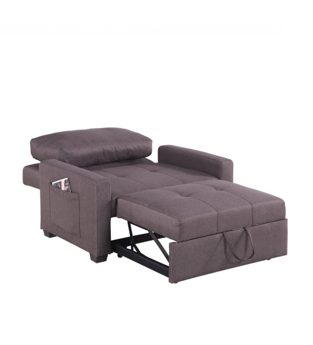 Πολυθρόνα / Κρεβάτι Ύφασμα Καφέ, πρόκειται για μια κοντή πολυθρόνα επενδυμένη με Καφέ ποιοτικό ύφασμα και