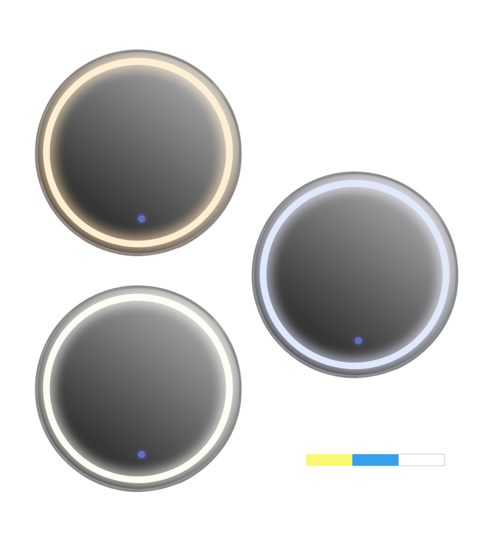 στο εμπρός και κάτω μέρος του καθρέπτη, ενώ παράγει 3 διαφορετικά χρώματα φωτός. Ζεστό (κιτρινωπό), Ελαφρύ μπλέ