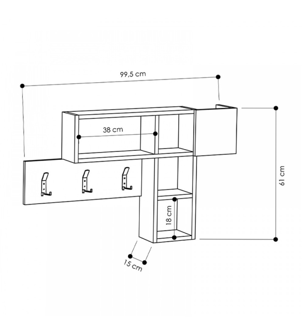 - Διαστάσεις: Μήκος 99,5 x Βάθος 15 x Ύψος 61 εκ.