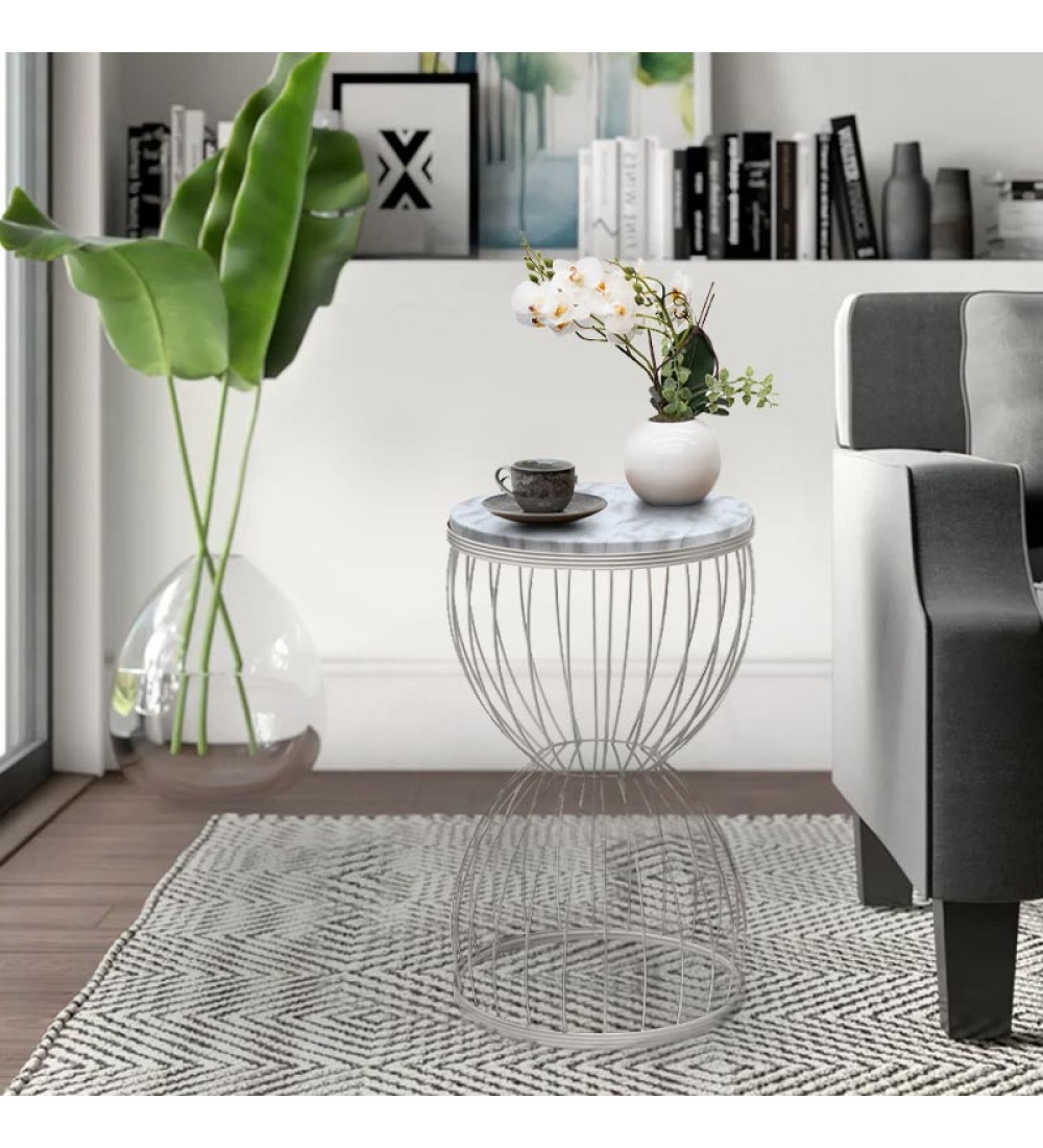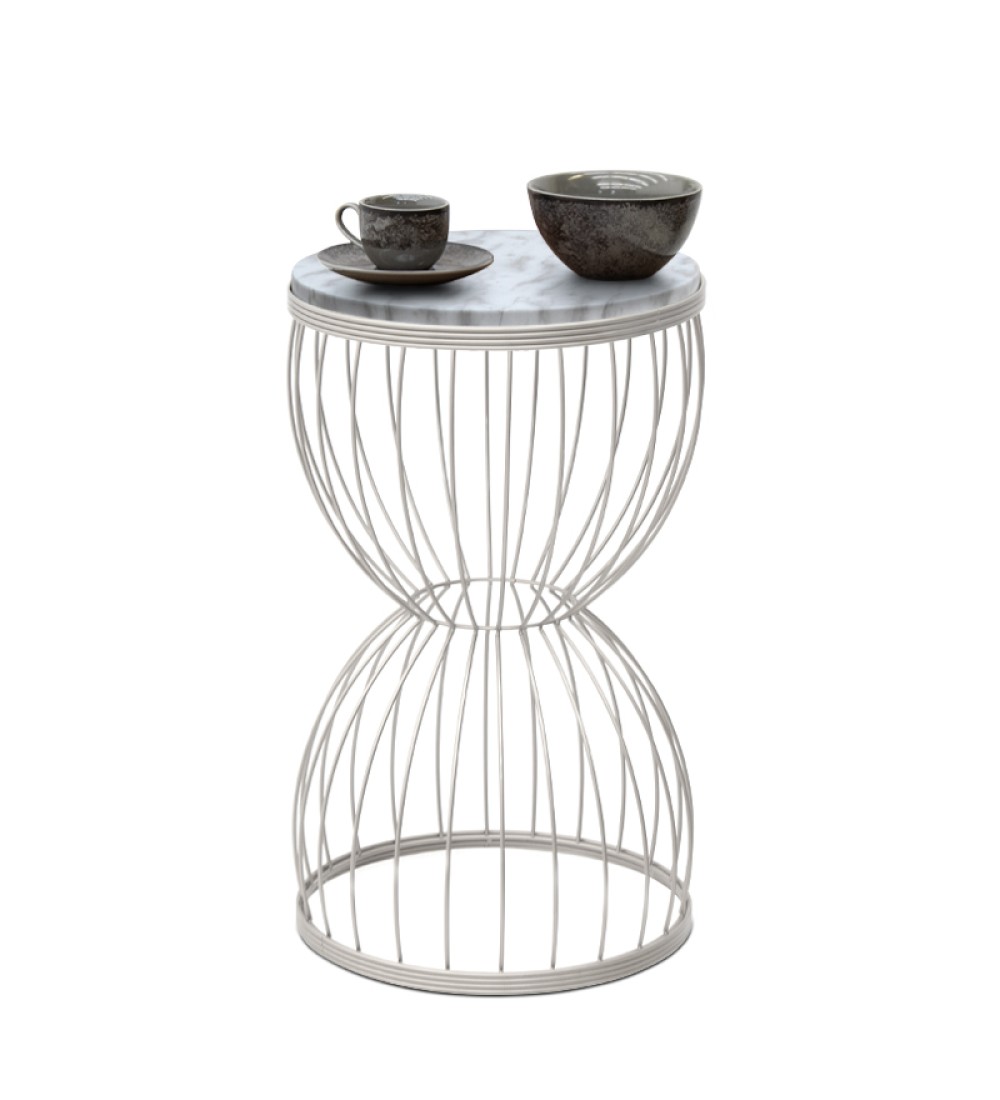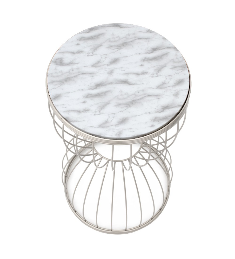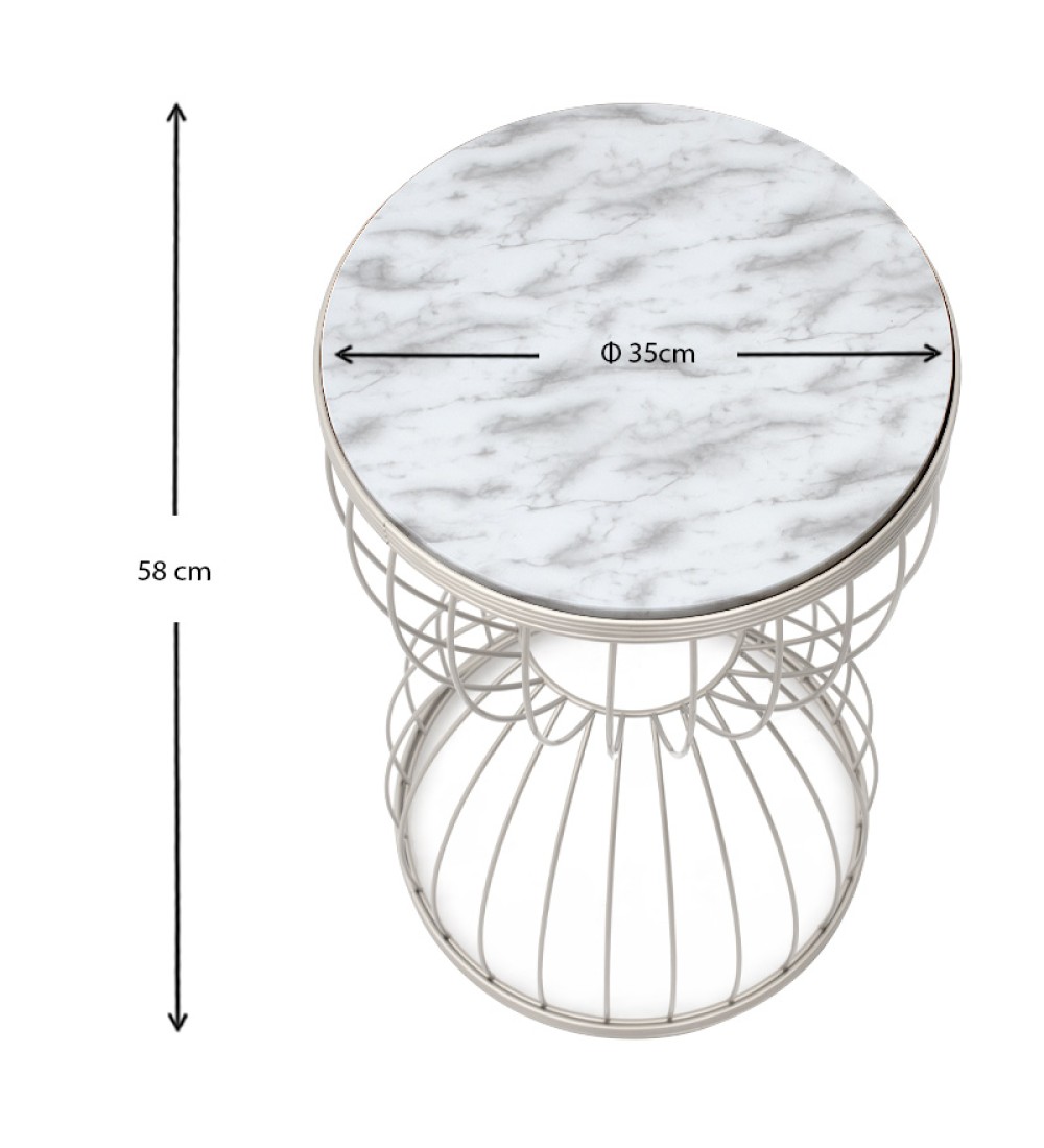 Τραπεζάκι Βοηθητικό Μεταλλικό - χρώμα Λευκό Εφέ Μαρμάρου