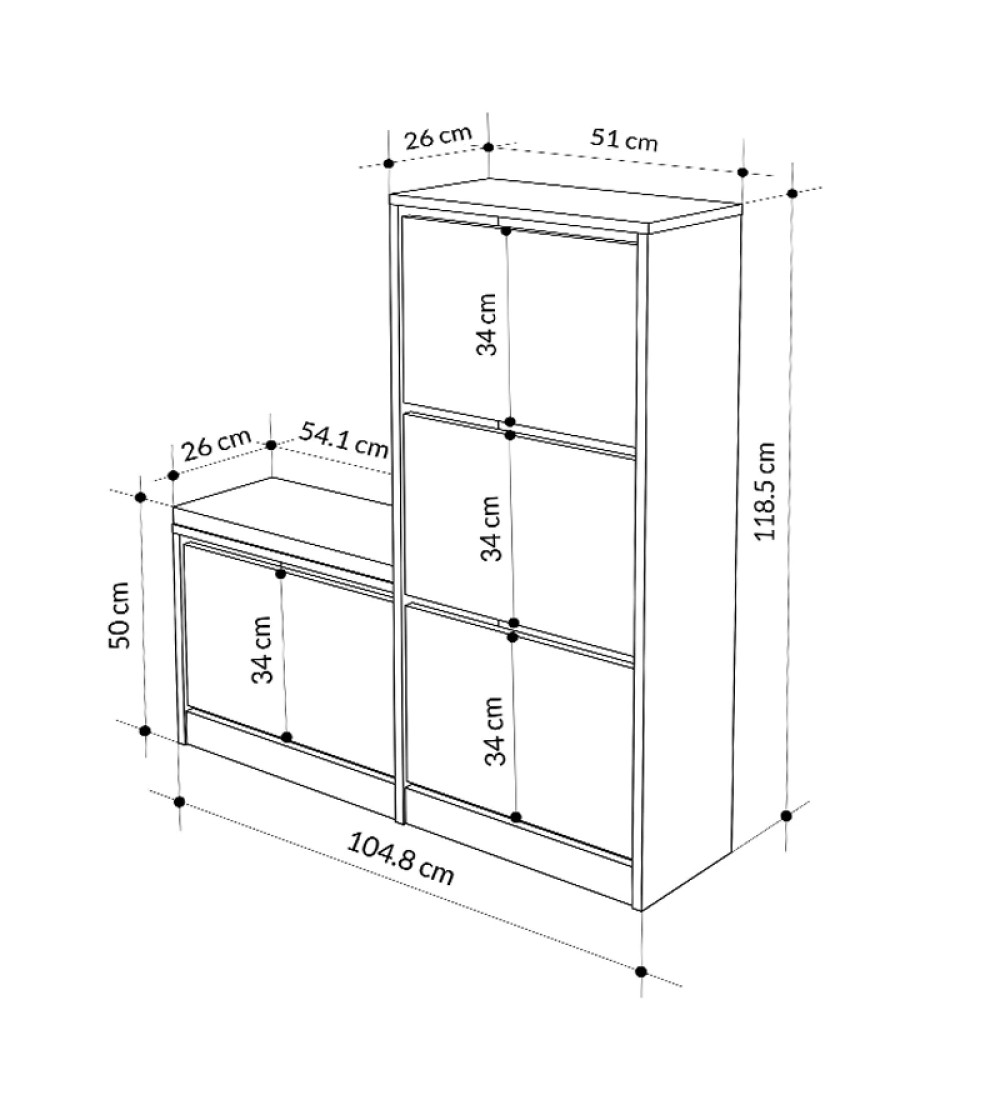 - Διαστάσεις: Μήκος 104,8 x Βάθος 26 x Ύψος 118,5 εκ.