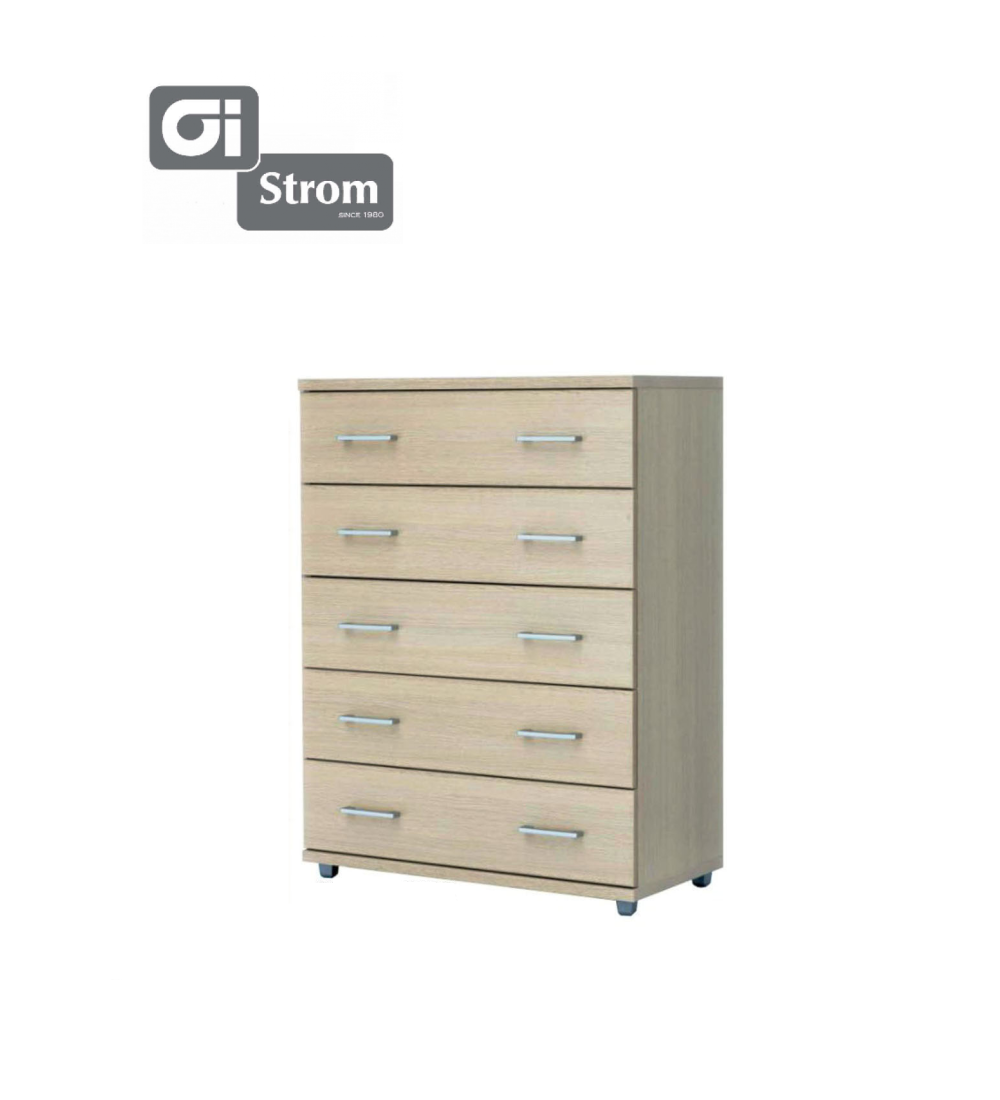Συρταριέρα Φαρδιά 5 συρτ. (Ελληνικής παραγωγής) σε εξωτερικές διαστάσεις Φ.90 x B.45 x Y.106εκ. και χρώμα ανοικτό δρύς.
