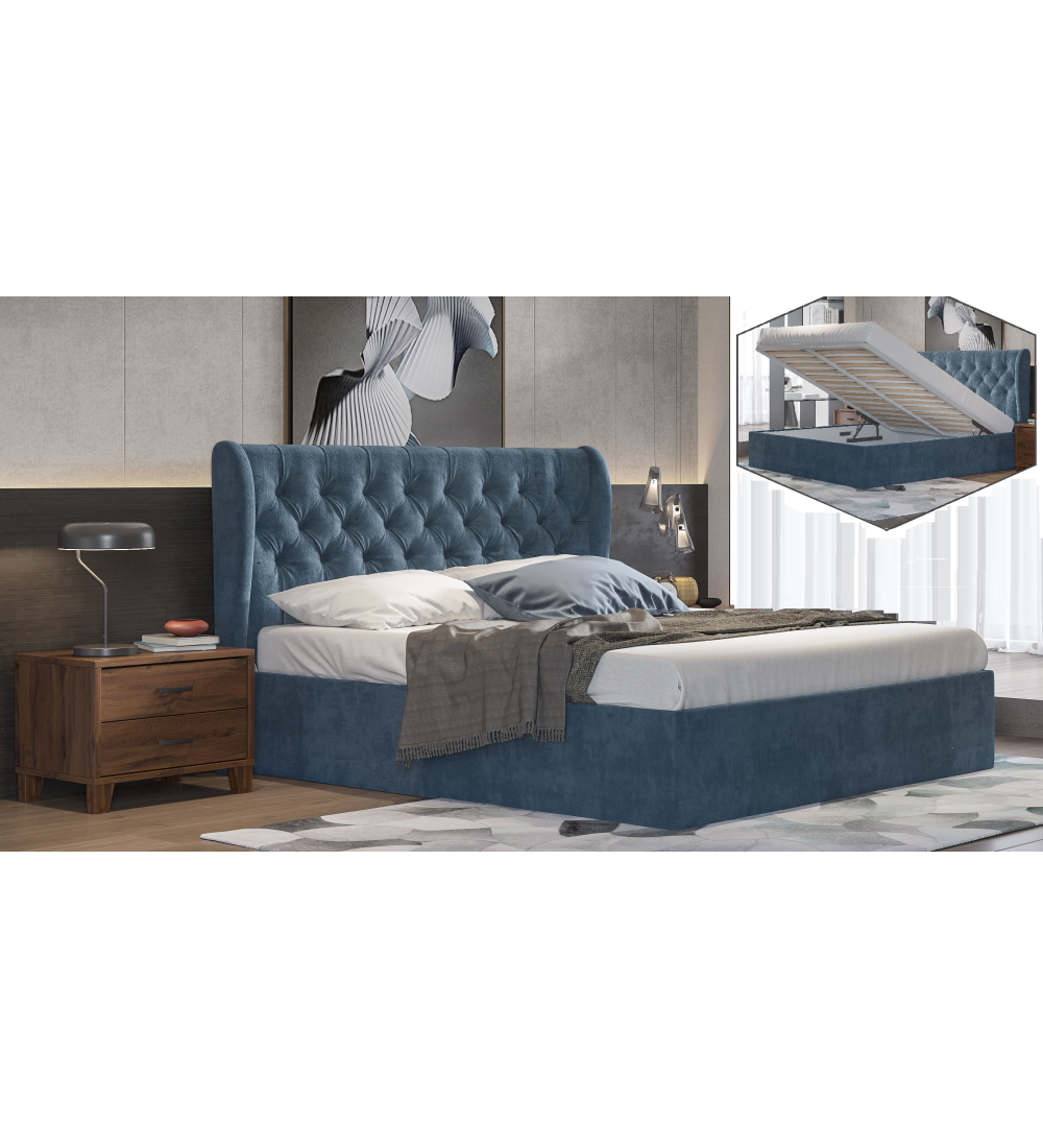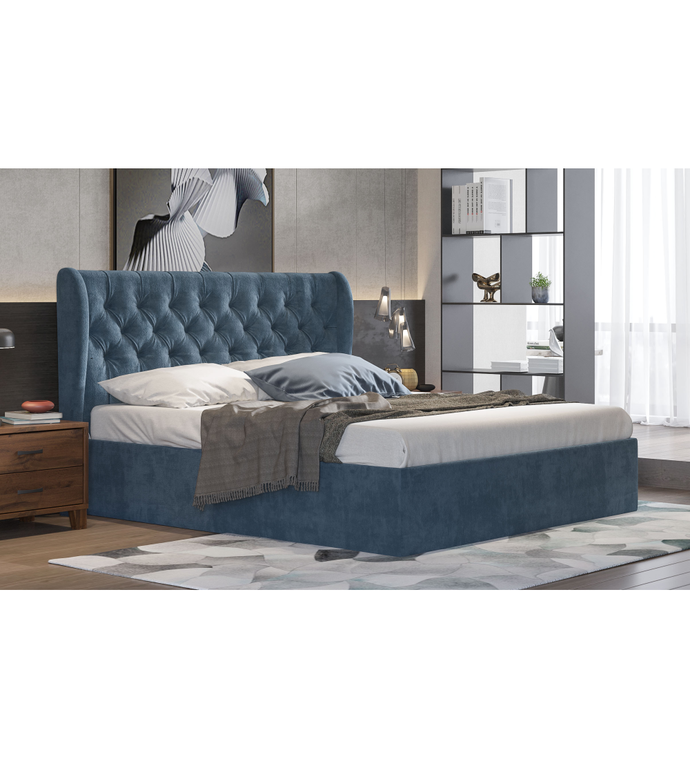 Κρεβάτι Καπιτονέ Μπλε ύφασμα Νο 186 (Ελληνικής κατασκευής) είναι σχεδιασμένο με καπιτονέ κεφαλάρι