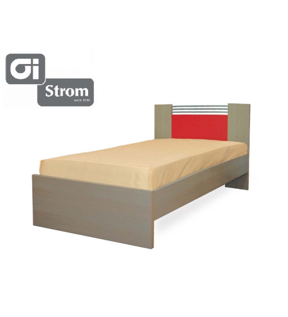 Κρεβάτι Μονό Νο 46 σε ξύλο pvc και χρώμα φυσικό δρυς σε συνδυασμό με κόκκινο και λεπτομέρεια νίκελ,