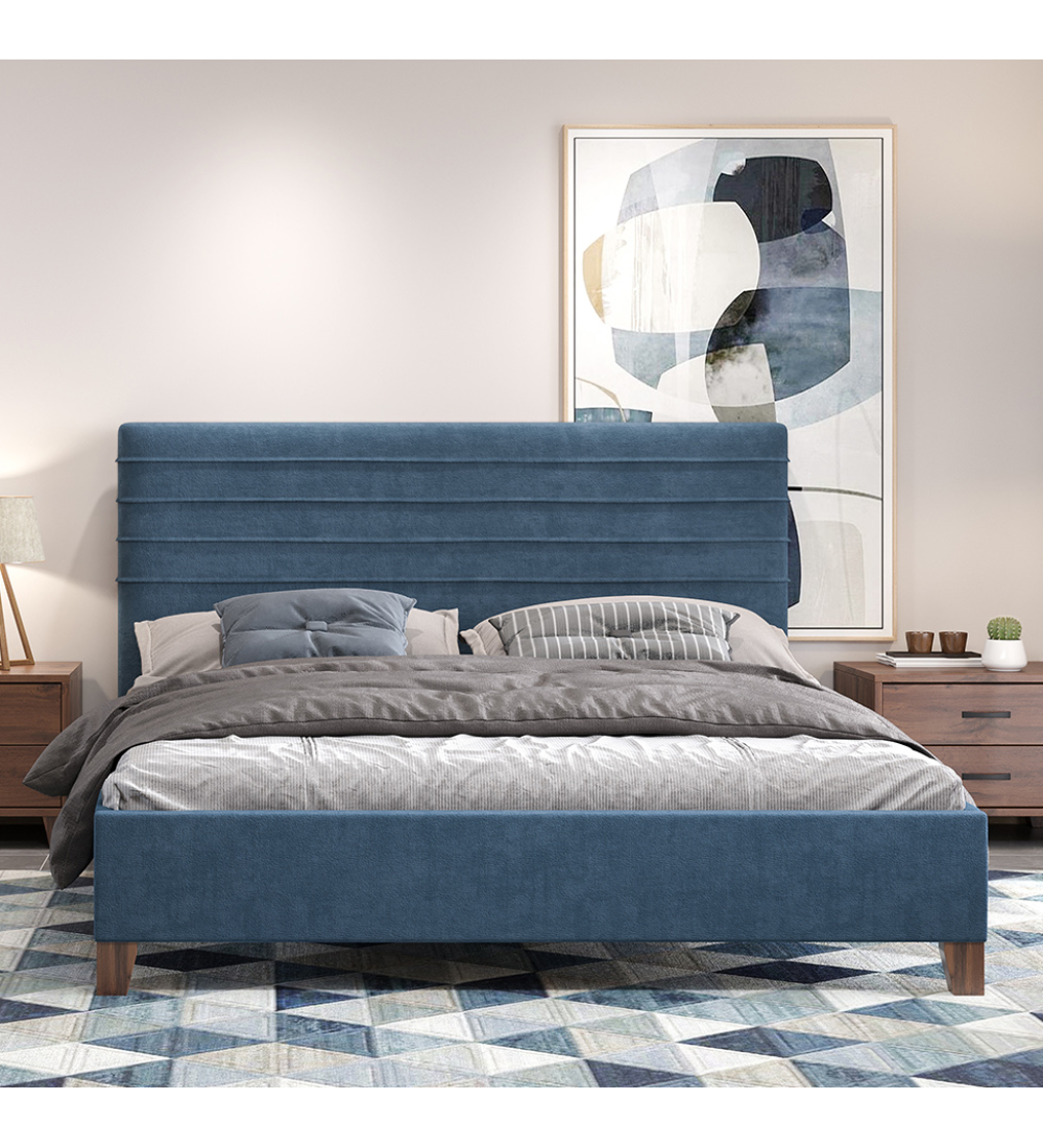 Κρεβάτι με Ύφασμα Μπλε - Διπλό Νο100 (Ελληνικής κατασκευής) είναι σχεδιασμένο με κεφαλάρι από ύφασμα