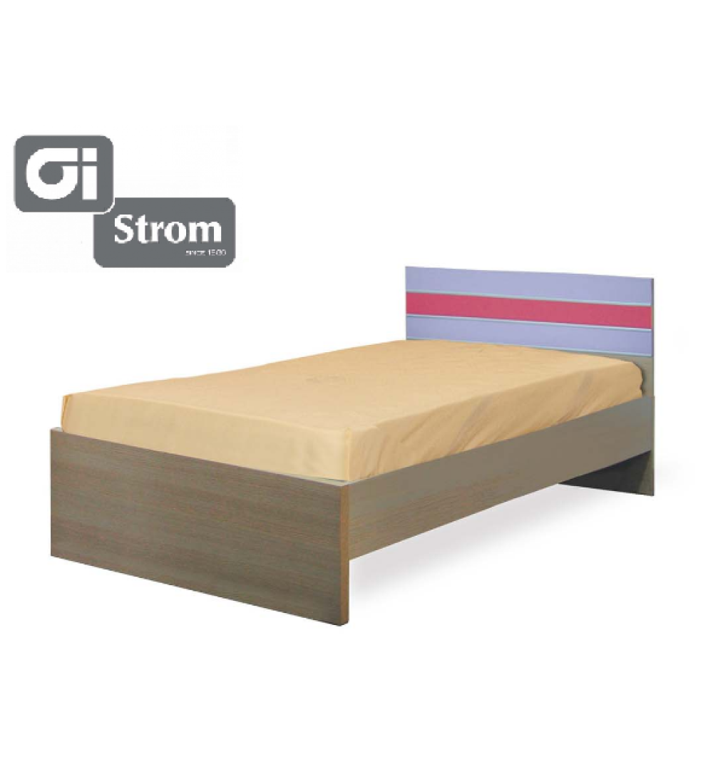 Κρεβάτι Μονό Νο 47 σε ξύλο pvc και χρώμα φυσικό δρυς σε συνδυασμό στο κεφαλάρι διχρωμία μόβ με φούξια,