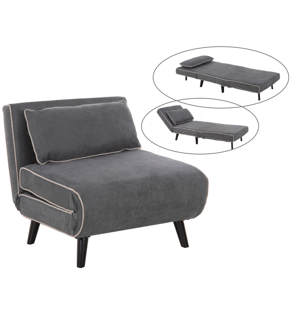 Η πολυθρόνα-κρεβάτι είναι η επιτομή της πρακτικότητας και του όμορφου στυλ. Στηρίζεται σε 4 ξύλινα μαύρα πόδια,