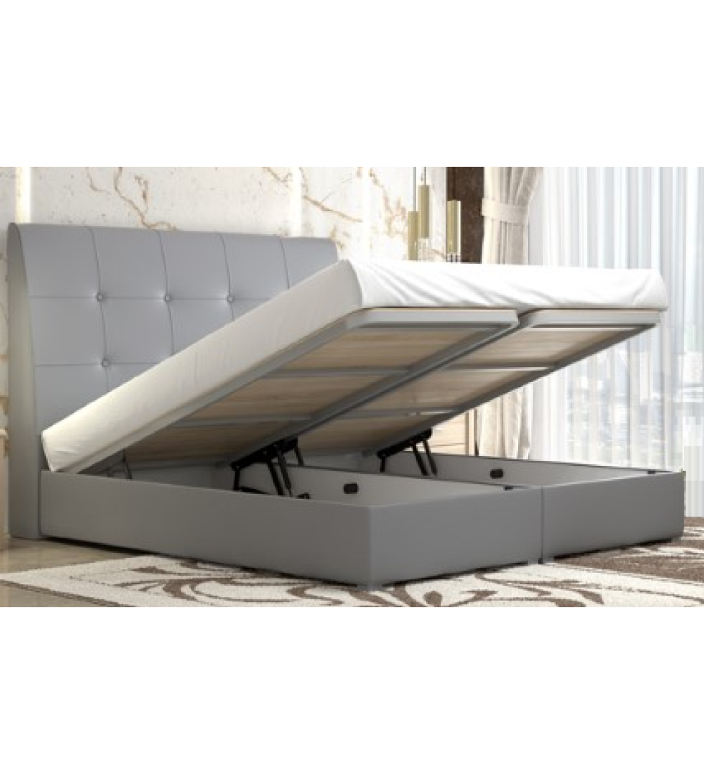 Κρεβάτι Διπλό με αποθηκευτικό Νο 160 - Γκρί τεχνόδερμα (Ελληνικής κατασκευής) συνδυάζει κεφαλάρι με σχέδιο καπιτονέ